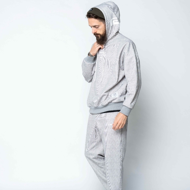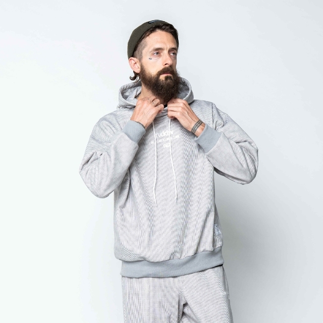 今季新登場ランニングカテゴリのフーディーは、綿とポリエステル混紡で汗の乾きが早い素材を使用した「走れるフーディー」。