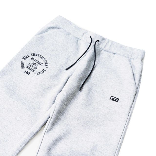 フロントのサークルロゴは刺繍で質感高く表現。軽くて動きやすく、足捌きの良いテーパードシルエットなので、筋トレやランニングなどのアクティビティにはもちろん、ジムの行き帰りなど、マルチに使えるアイテム。