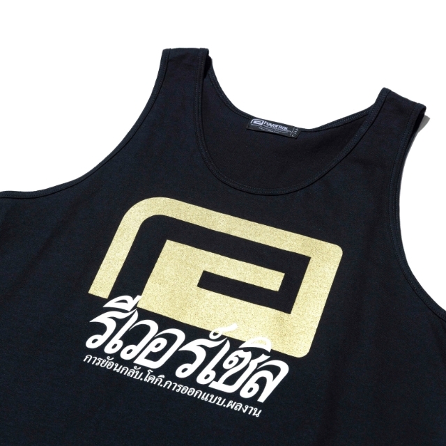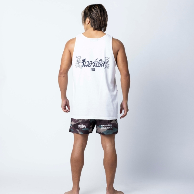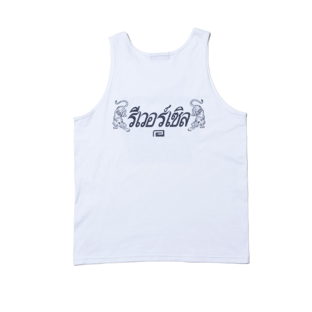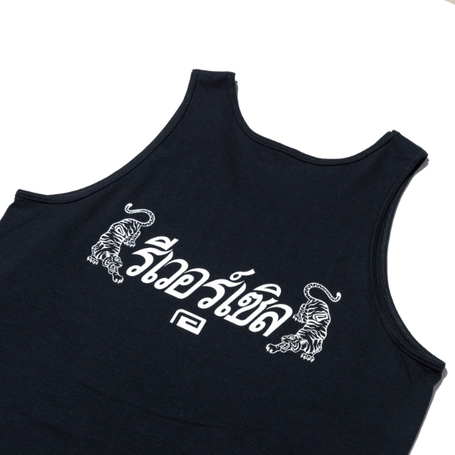 タイ語ver. のBIGMARK を、スーベニア風にあえて大きめに配し、背中にはタイ語のreversal と双虎という、異国情緒漂うタンクトップ。