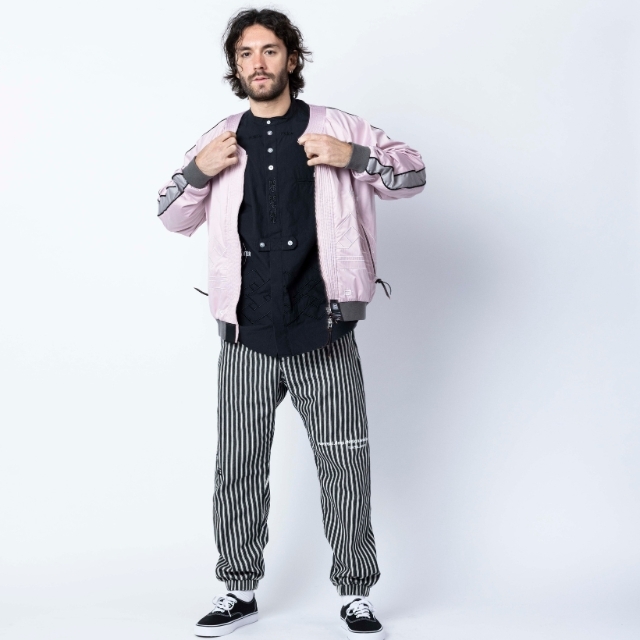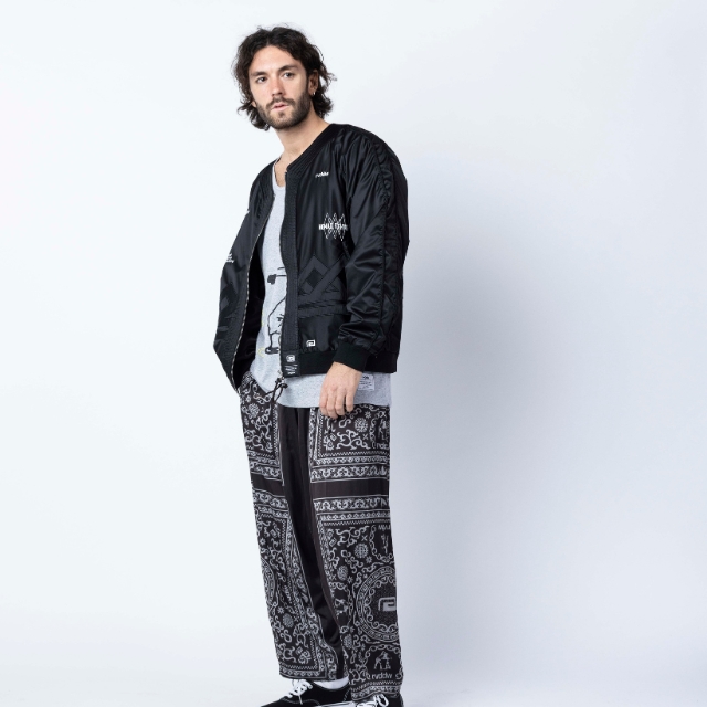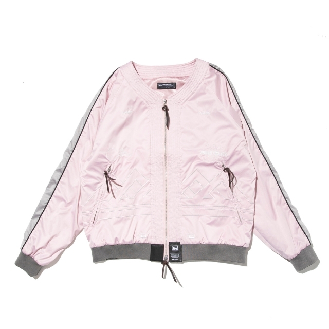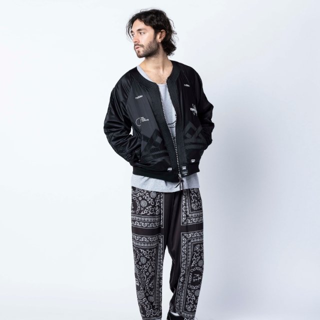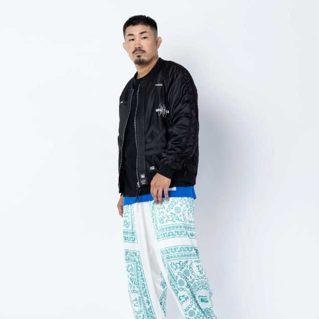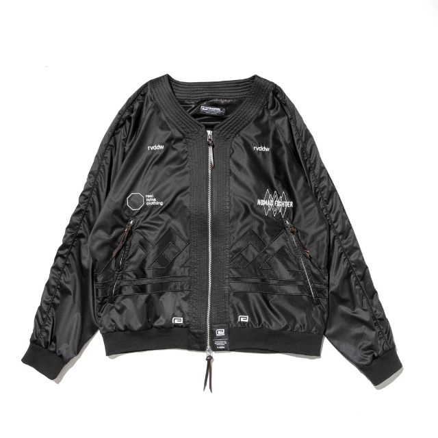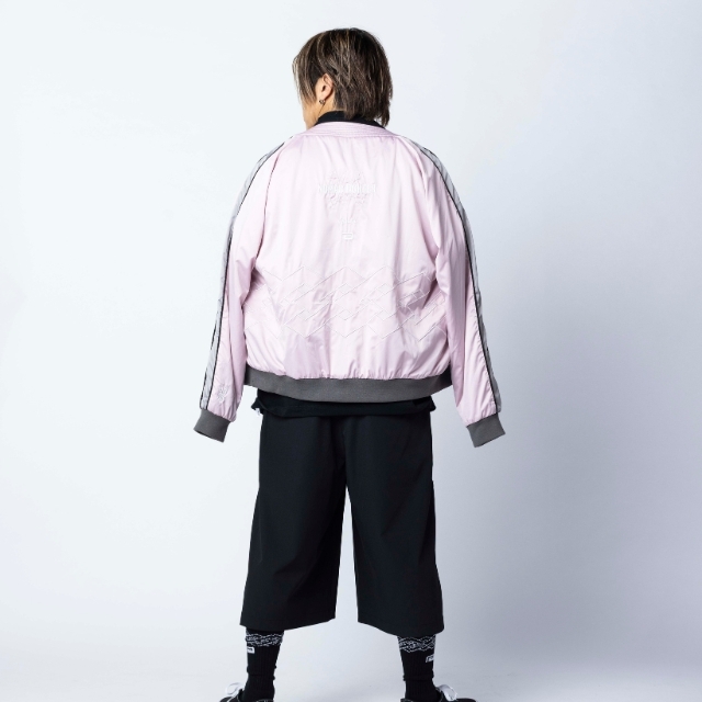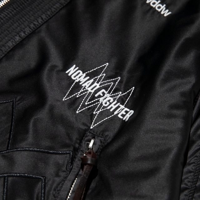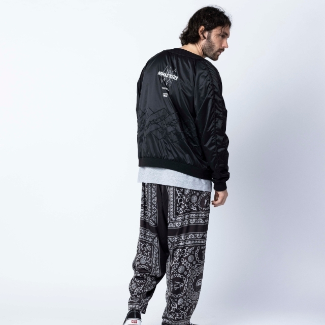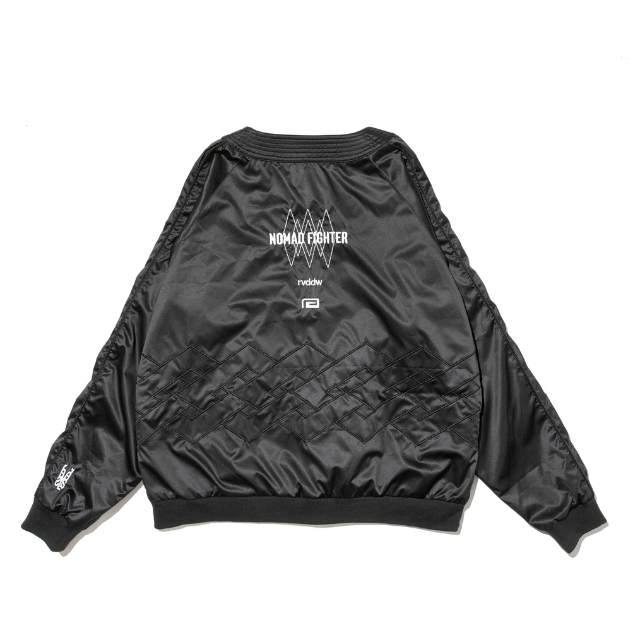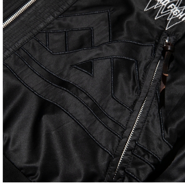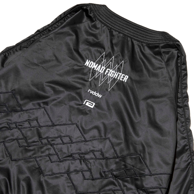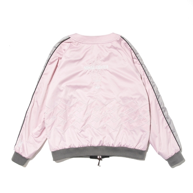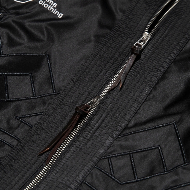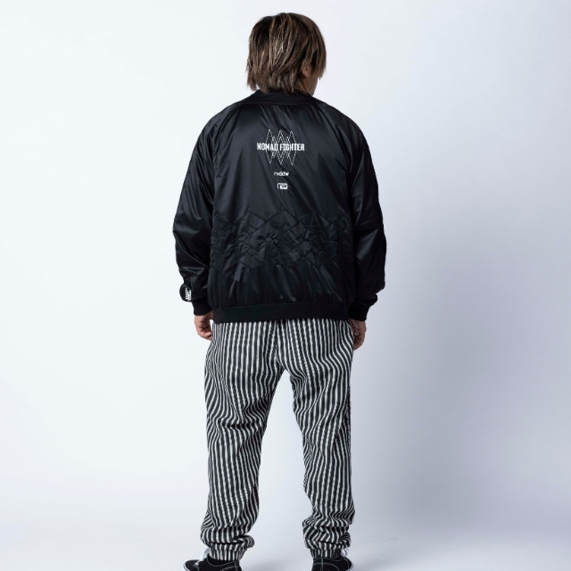 道着の襟のディテールを採用したNOMAD FIGHTER スカジャンは、風合いの良い上質なサテン生地を使用し、身頃のグラフィックには勝守の意味がある伝統柄を刺繍で落とし込んだ1着。