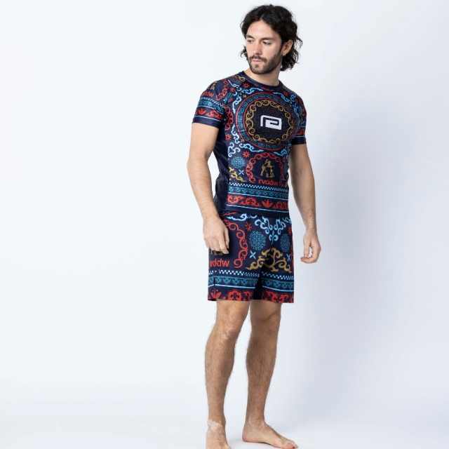 モンゴルに古来より伝わる伝統的な立技組技系格闘技「BOKH(ブフ)」をモチーフにした柄を配置。